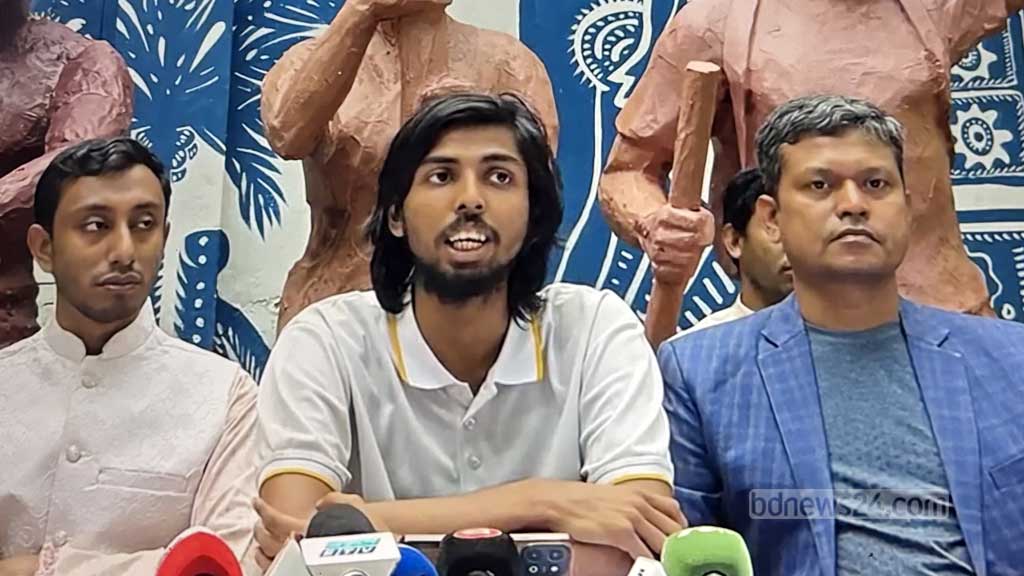 চারুকলা অনুষদে আয়োজিত সংবাদ সম্মেলনে ডাকসুর সাহিত্য ও সংস্কৃতি সম্পাদকের সঙ্গে সমাজসেবা সম্পাদক এবি যুবায়ের, স্বাস্থ্য বিষয়ক সম্পাদক আব্দুল্লাহ আল মিনহাজ ও বিপ্লবী সাংস্কৃতিক ঐক্যের সভাপতি মৃন্ময় মিজান উপস্থিত ছিলেন।